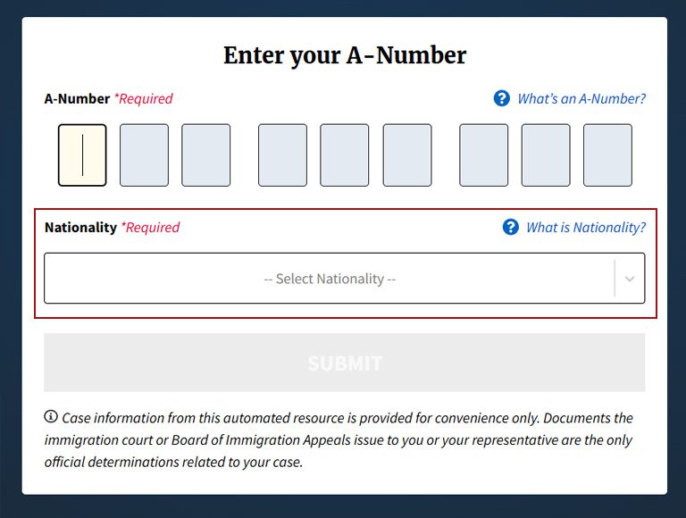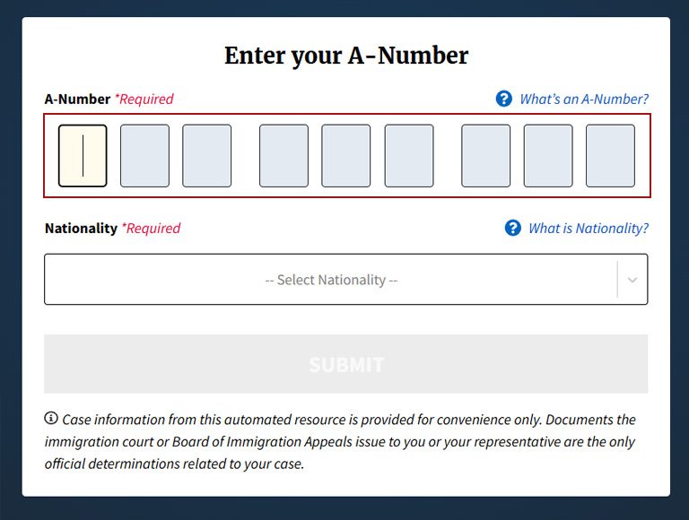 This guide will help you check the date, time, and location of your next hearing in Immigration Court using your “A” Number.